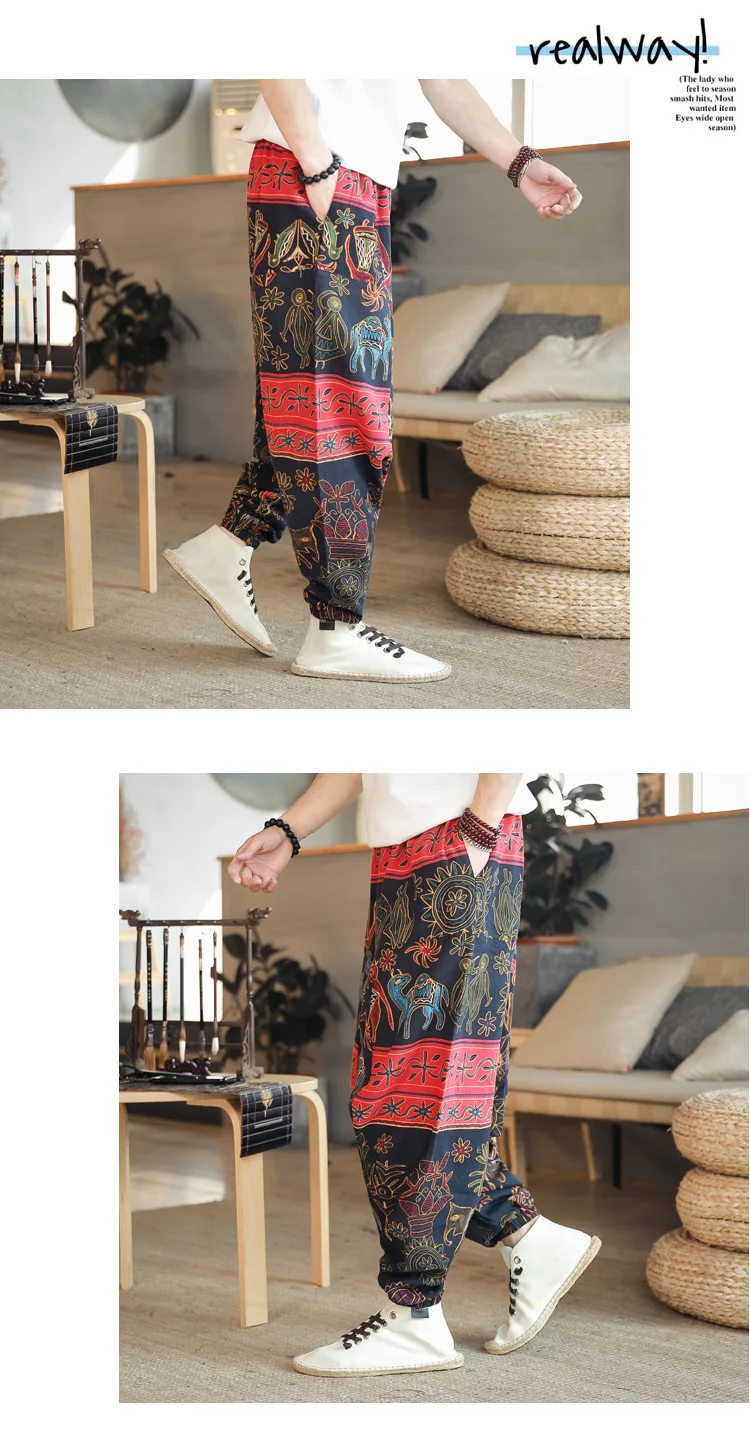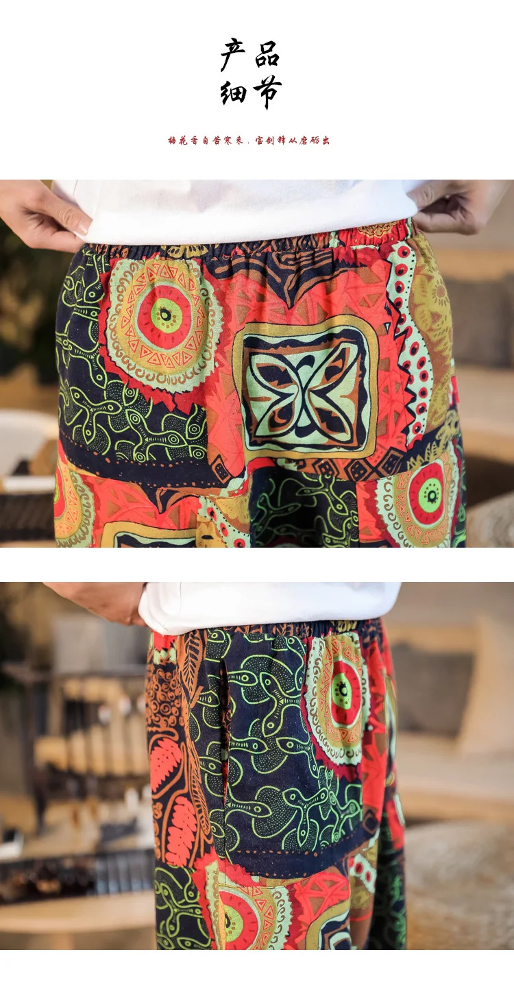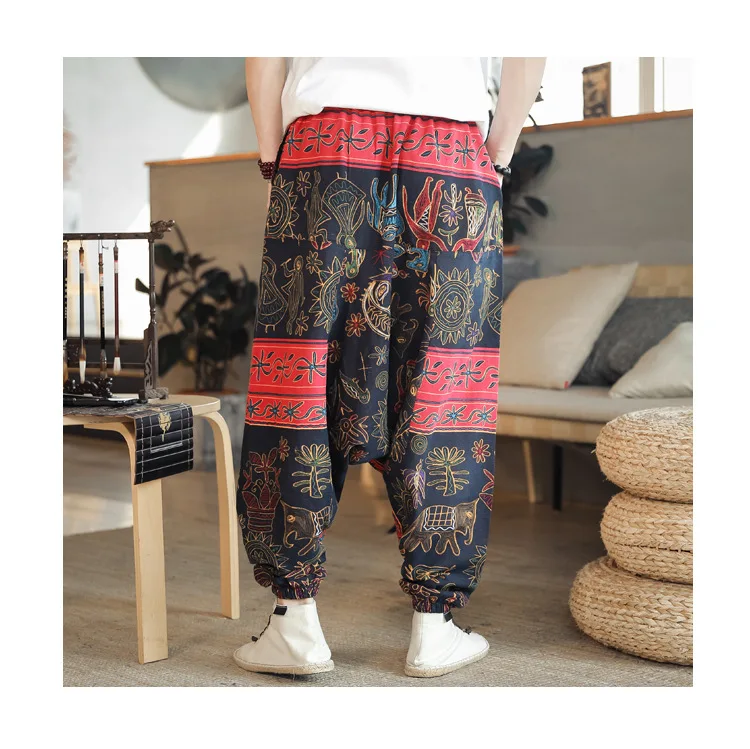 2024 Spring/Summer Nepal Prints Cotton Linen Joggers Men Baggy Hippie Boho Gypsy Aladdin Cargo Pants Yoga Harem Pants Women
