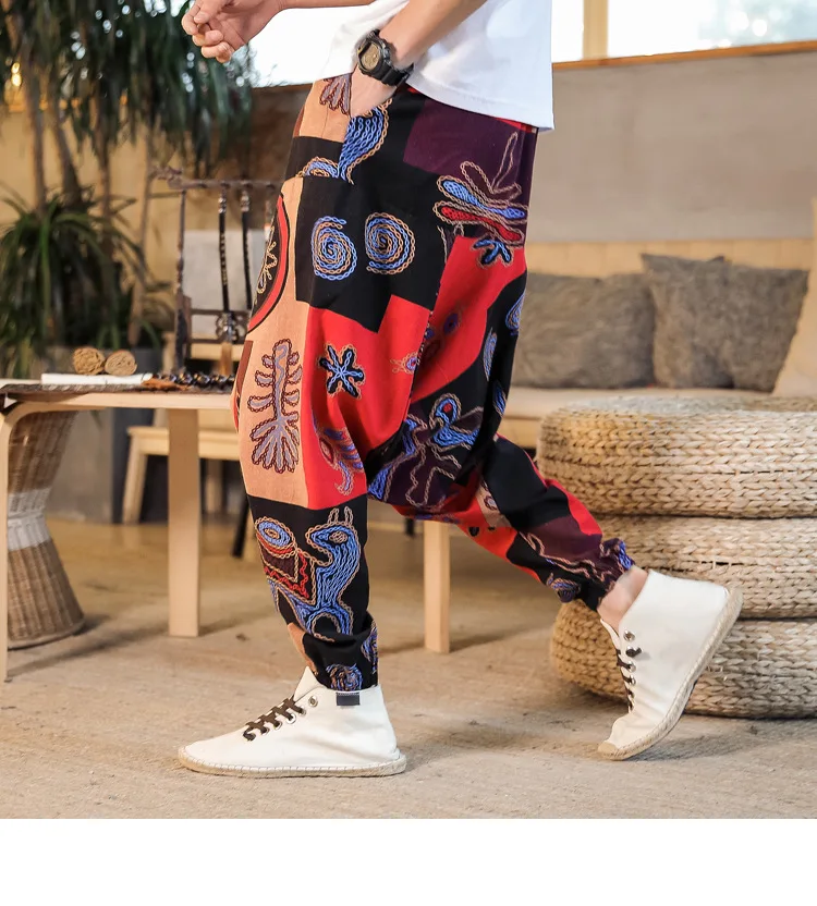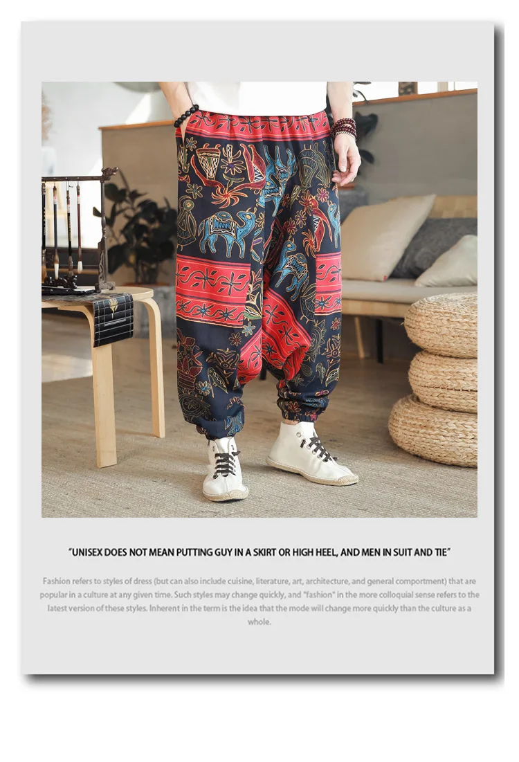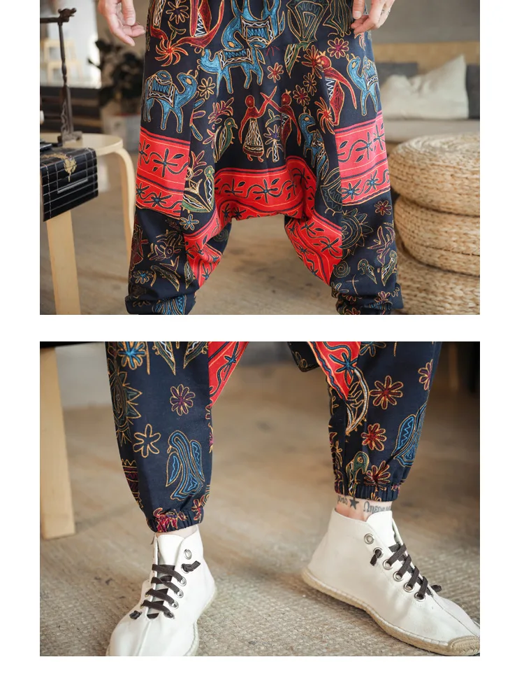 MATERIAL: The drop crotch pants for women and men are made of cotton linen , they are available in different colorful designs