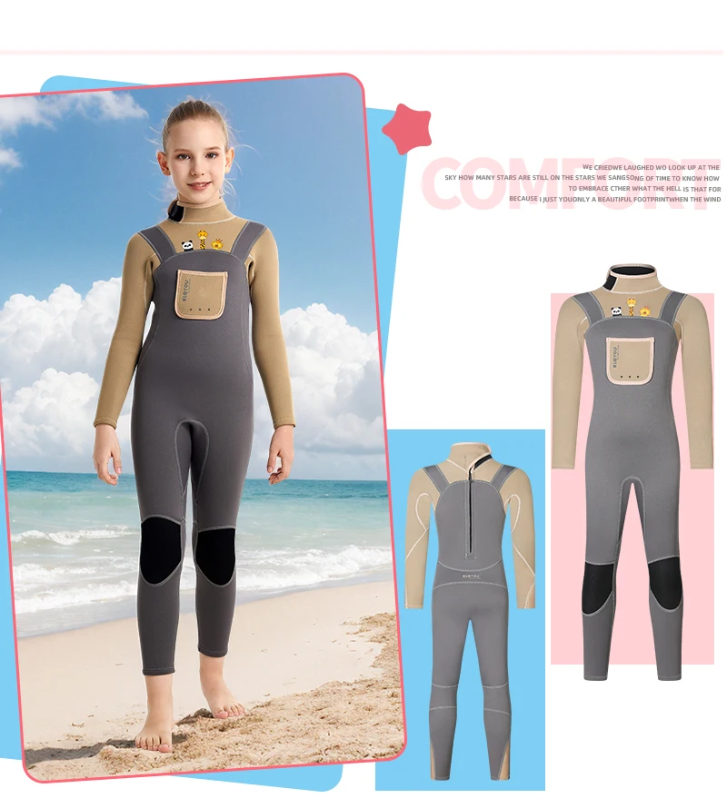 The wrists and ankles are equipped with highly elastic CR neoprene material, reducing the sense of restraint on children and allowing them to move more freely in the water.