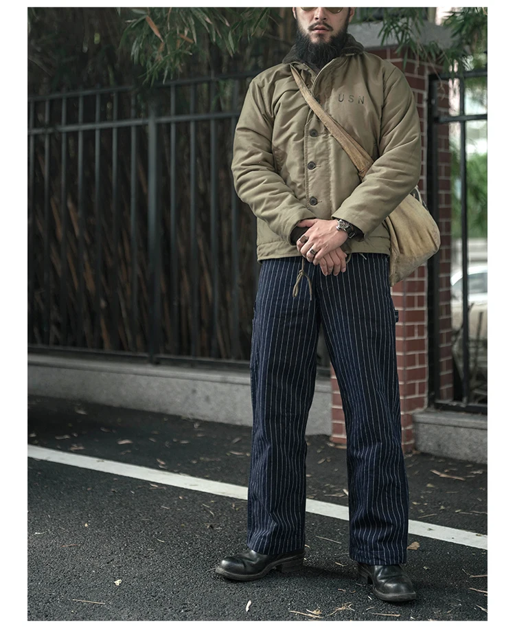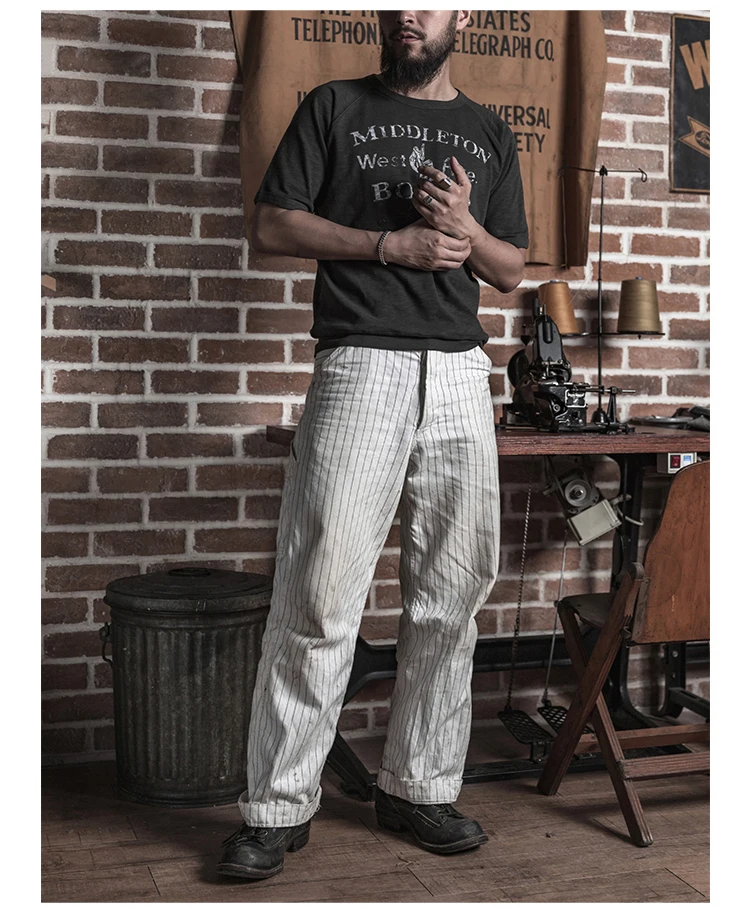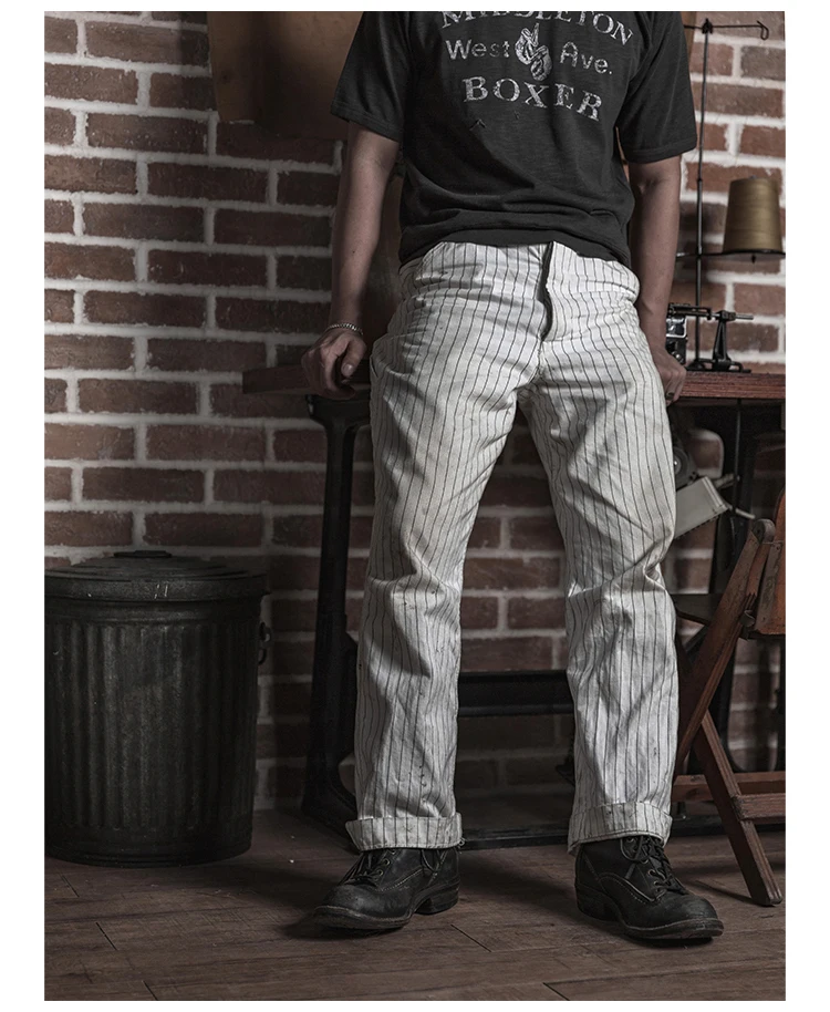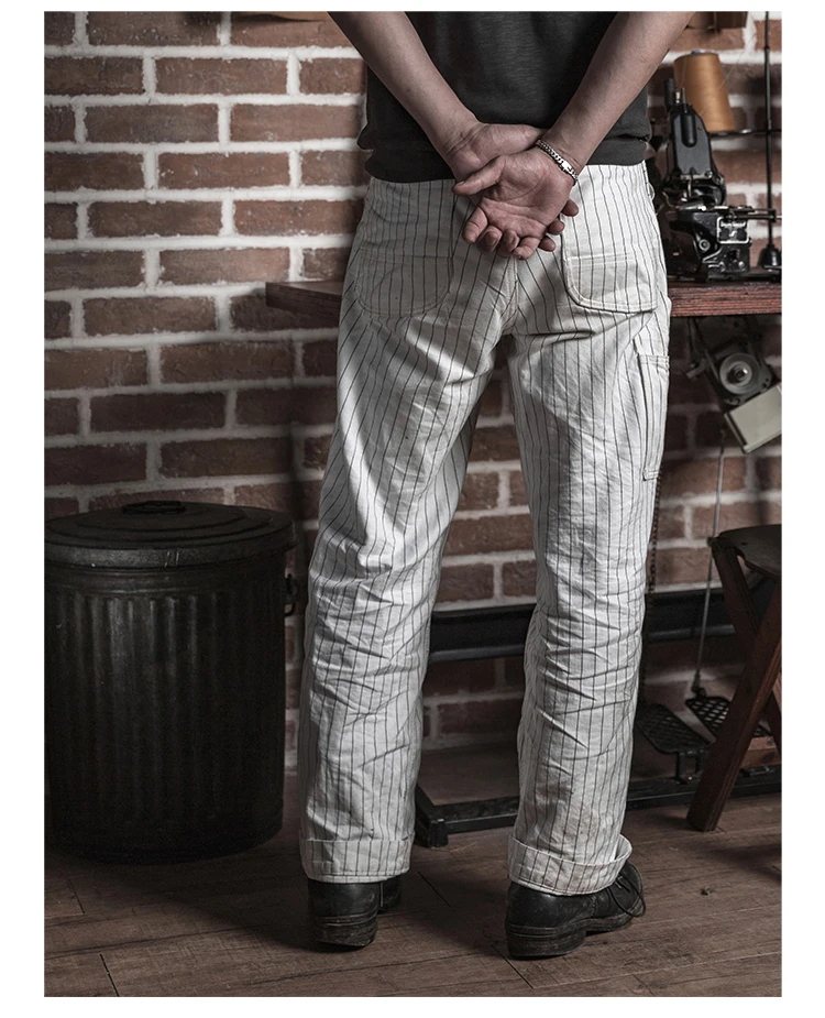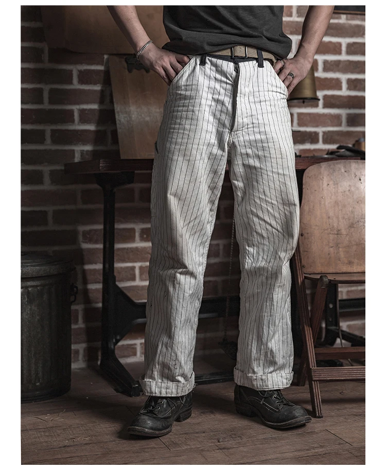 Bronson 50s Mechanic Work Pants Vintage Railroad Carpenter Stripe Trousers Workwear