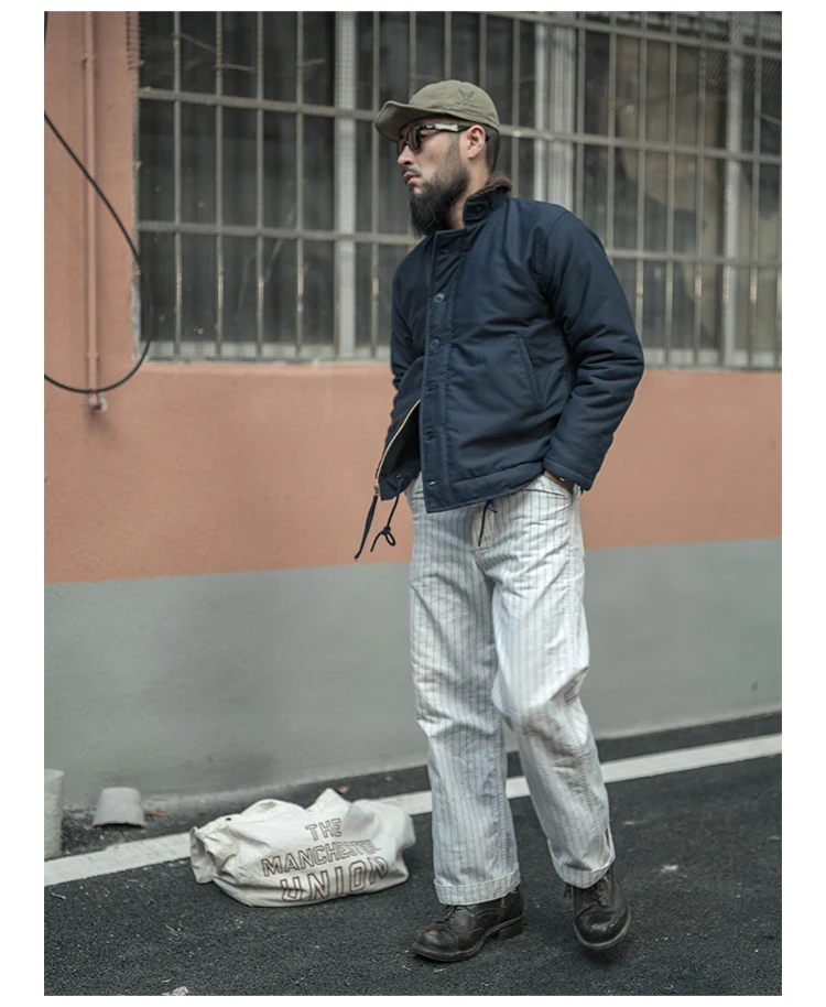 Description: Based on the 1950s split style coveralls that are widely worn by carpenter, painter and railroad worker. Insead of the coveralls and overalls, the pants have been built for every day. Boasting a loose fitting silhouette and a deep front rise. Made using the medium weight 10.5oz hbt cotton to reproduce the feeling of original. Sewn with cotton thread throughout. Ideally these pants are paired with all kinds of military or work jacket.