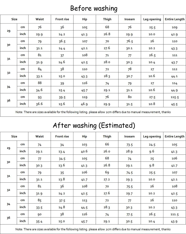 * Please note these pants will shrink somewhat when wahsed. Check our size chart for the estimated measurements