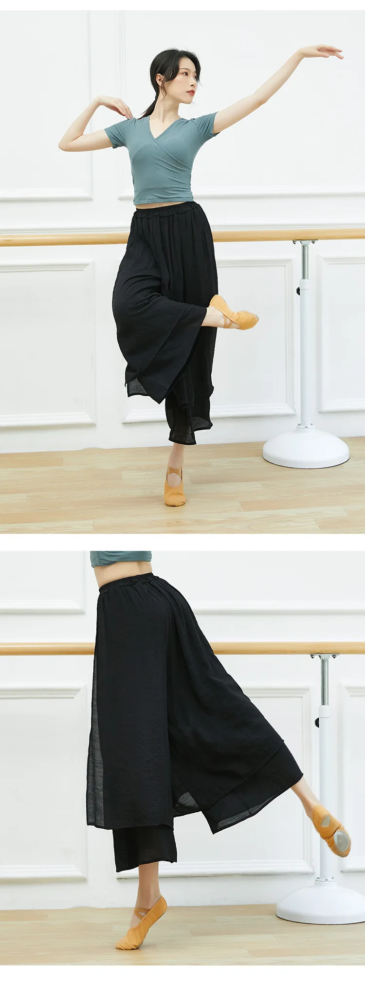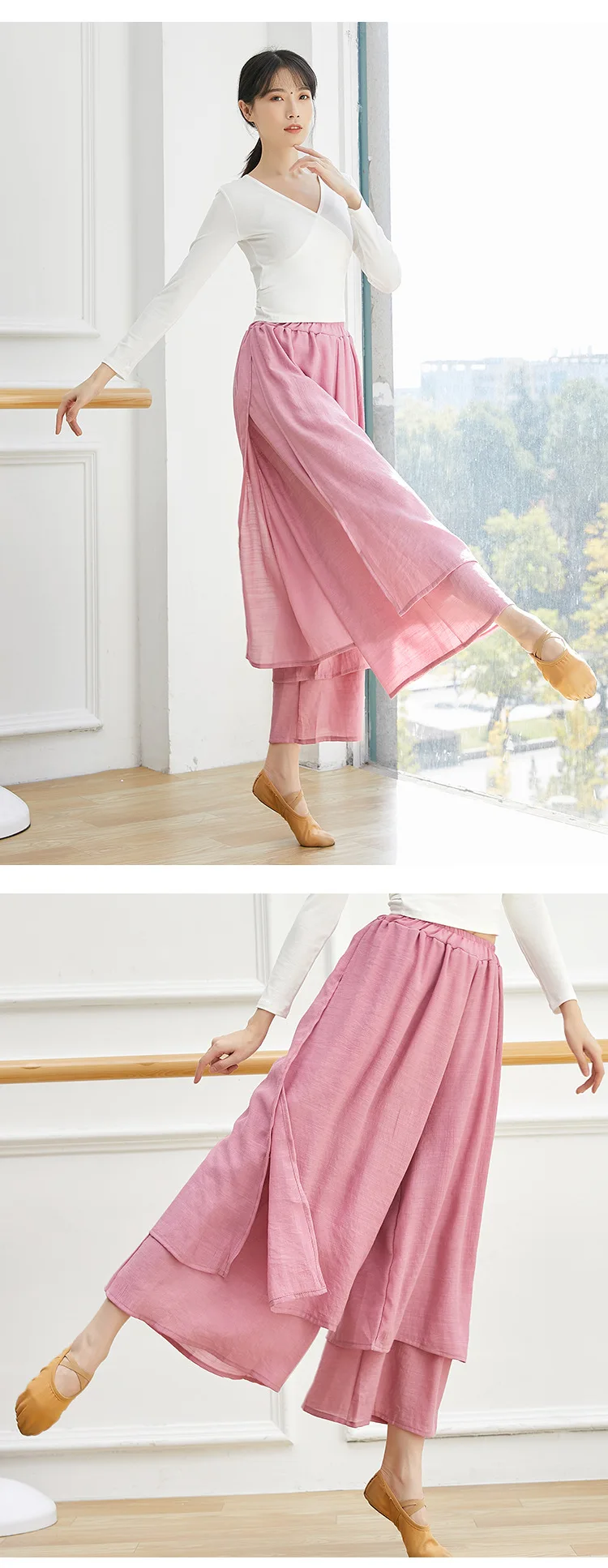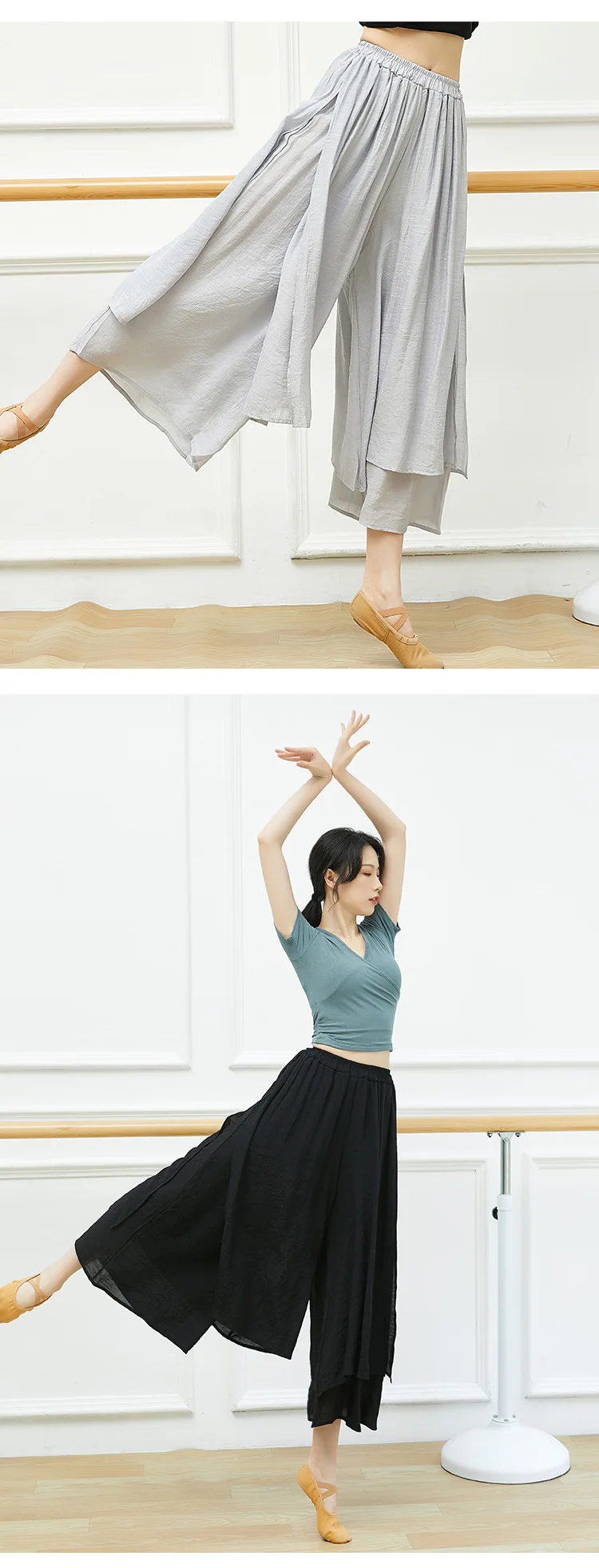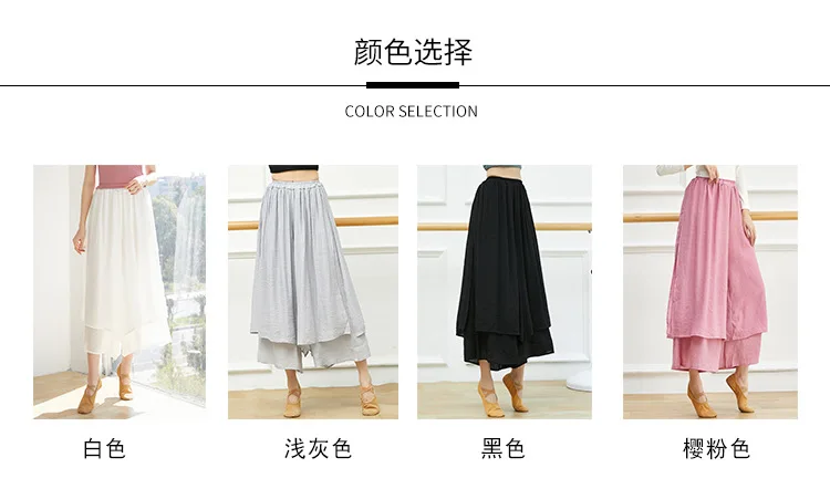 Dance Yoga Pants Ladies Wide Leg Pants Cotton Silk Linen Split Wide Leg Pants Dance Performance Training Pants Plus Size 2XL