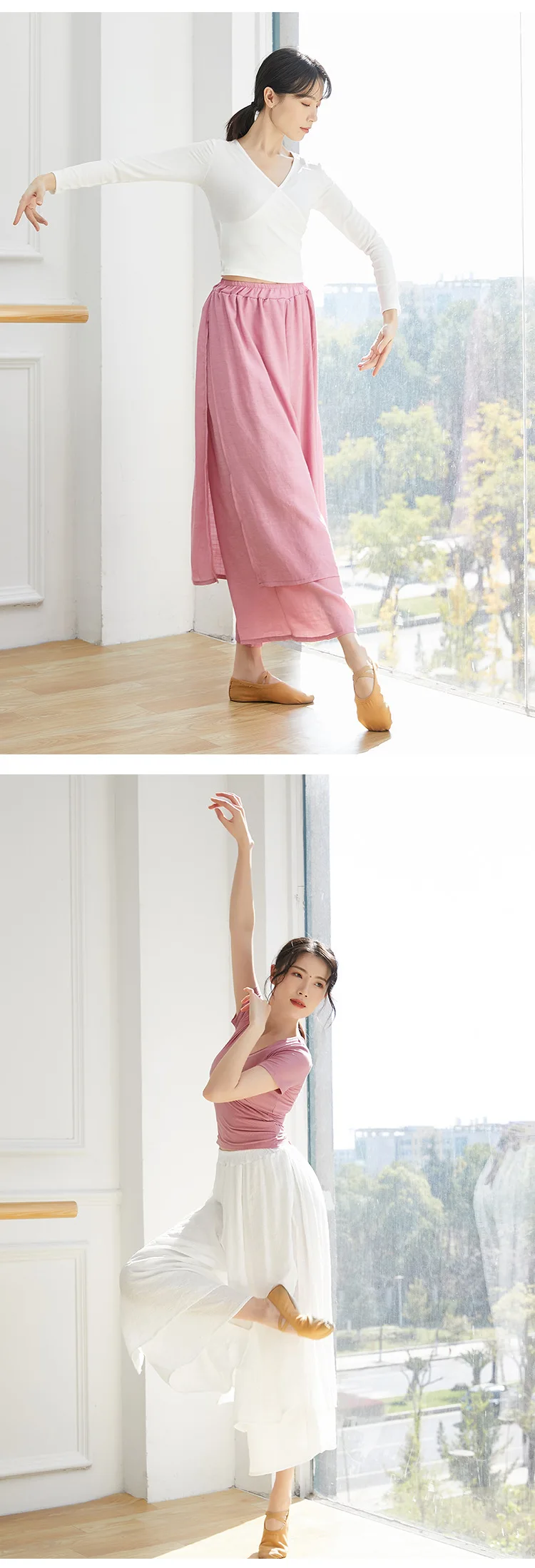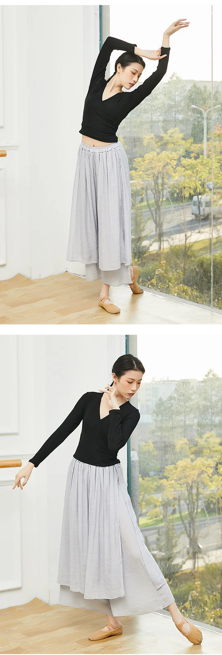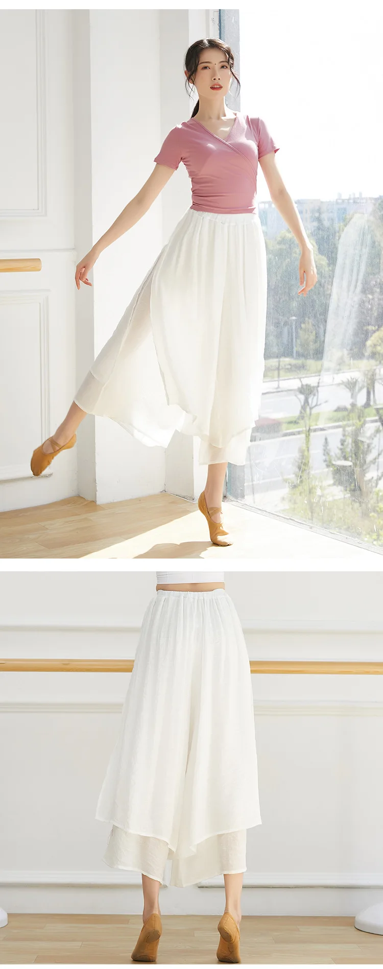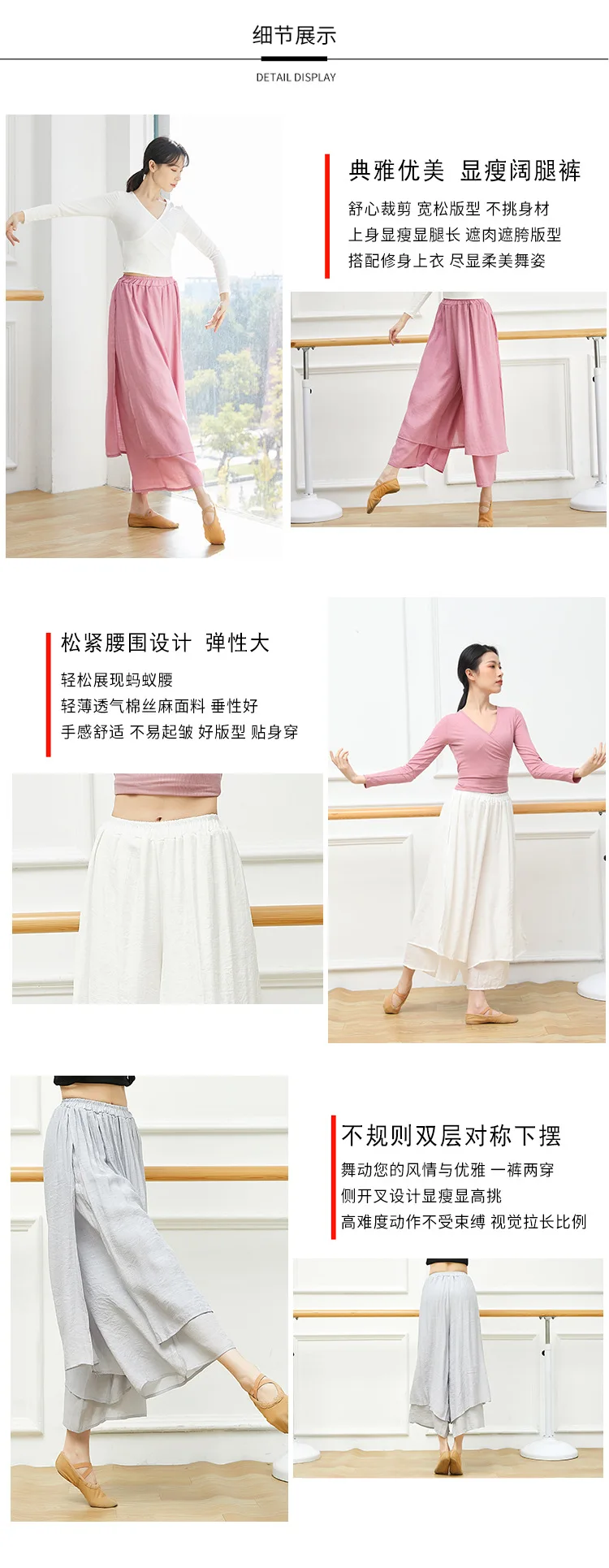 Dance Yoga Pants Ladies Wide Leg Pants Cotton Silk Linen Split Wide Leg Pants Dance Performance Training Pants Plus Size 2XL