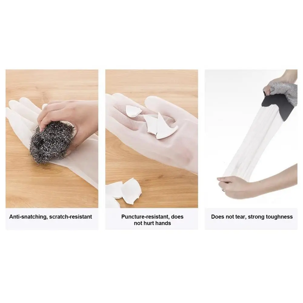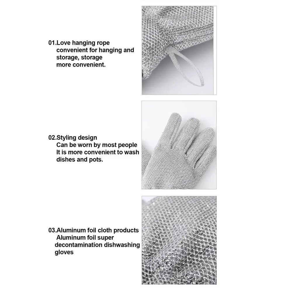 3.Reliable and Durable : Our dish washing gloves feature superior silver wire rag material that efficiently removes tough stains and grease with ease, eliminating the need for extra cloths or sponges.