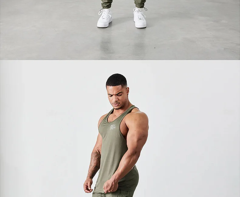 Mens Gym Muscle Fitness Singlets Fashion Brand Clothing Sports Workout Printed Tank Top Breathable Sleeveless Cotton Casual Vest