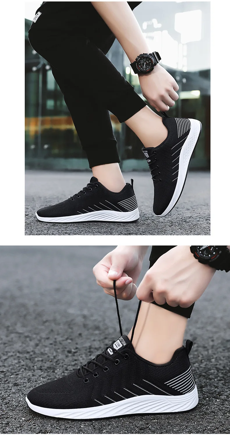 New men's fashion casual sneakers, men's flying woven shock-absorbing running shoes, version mesh breathable shoes