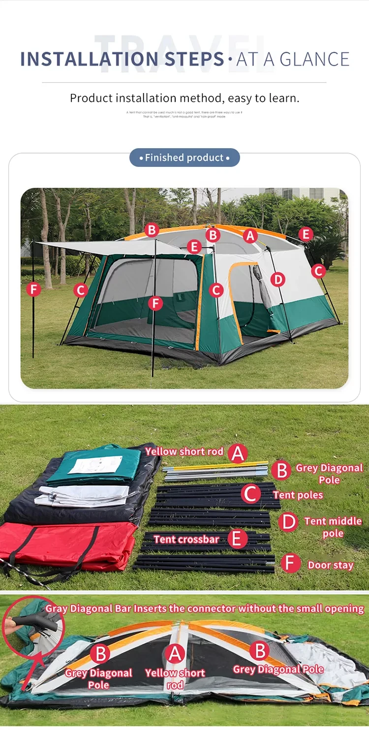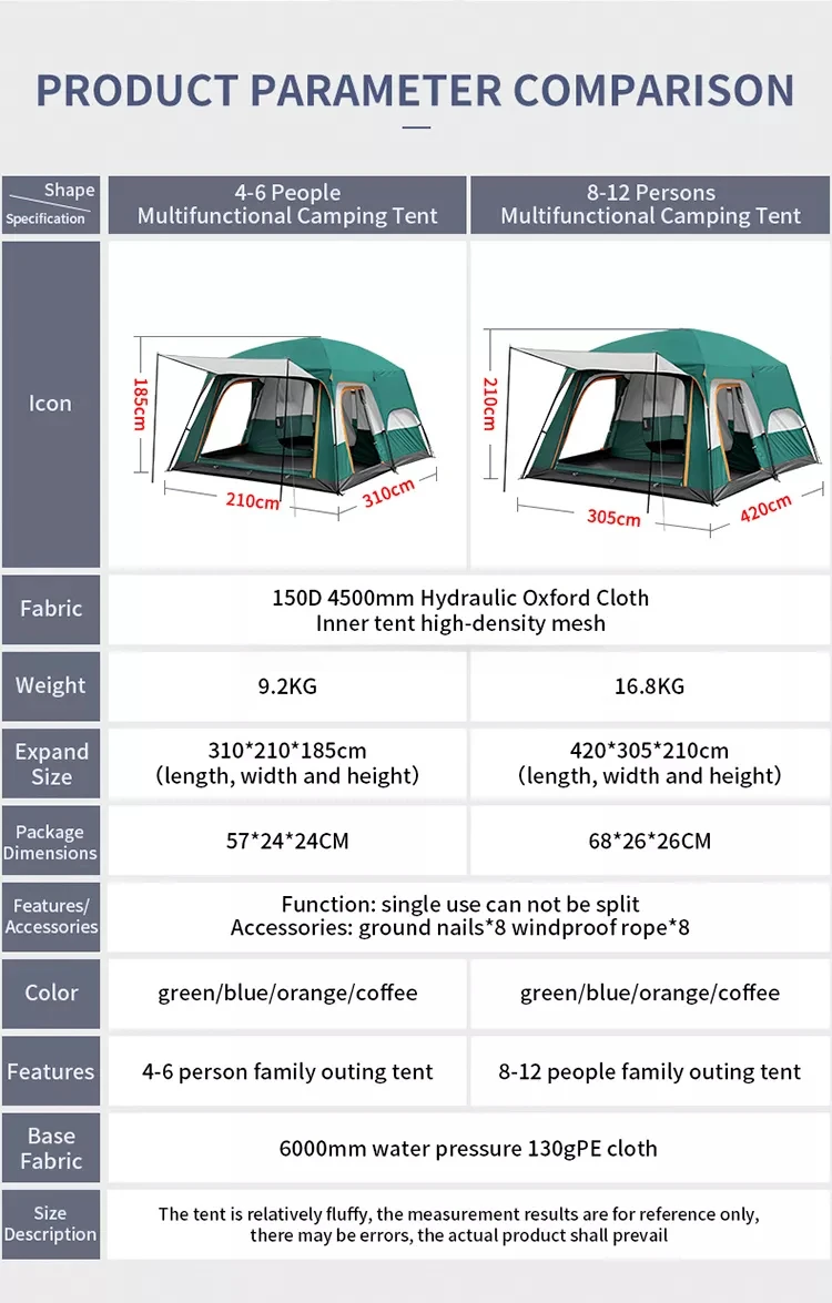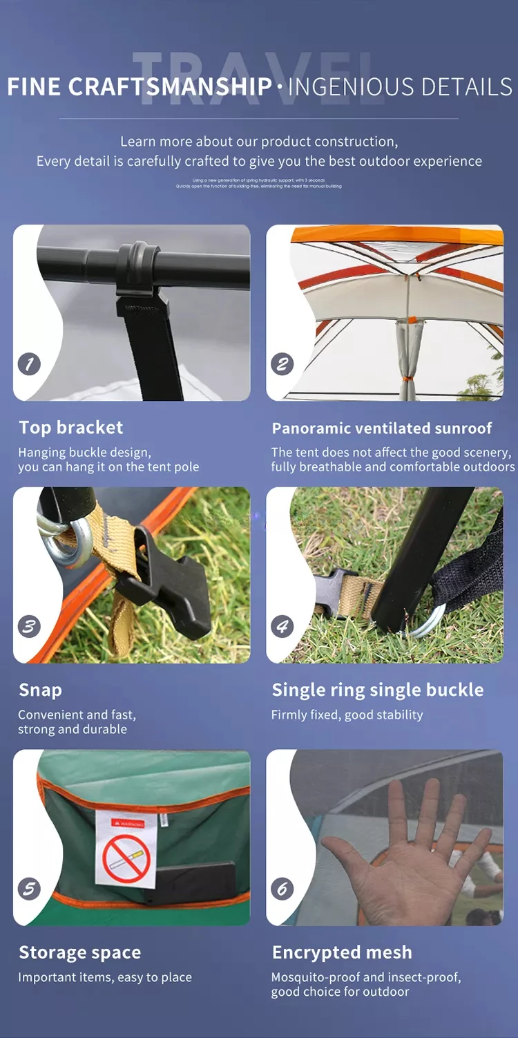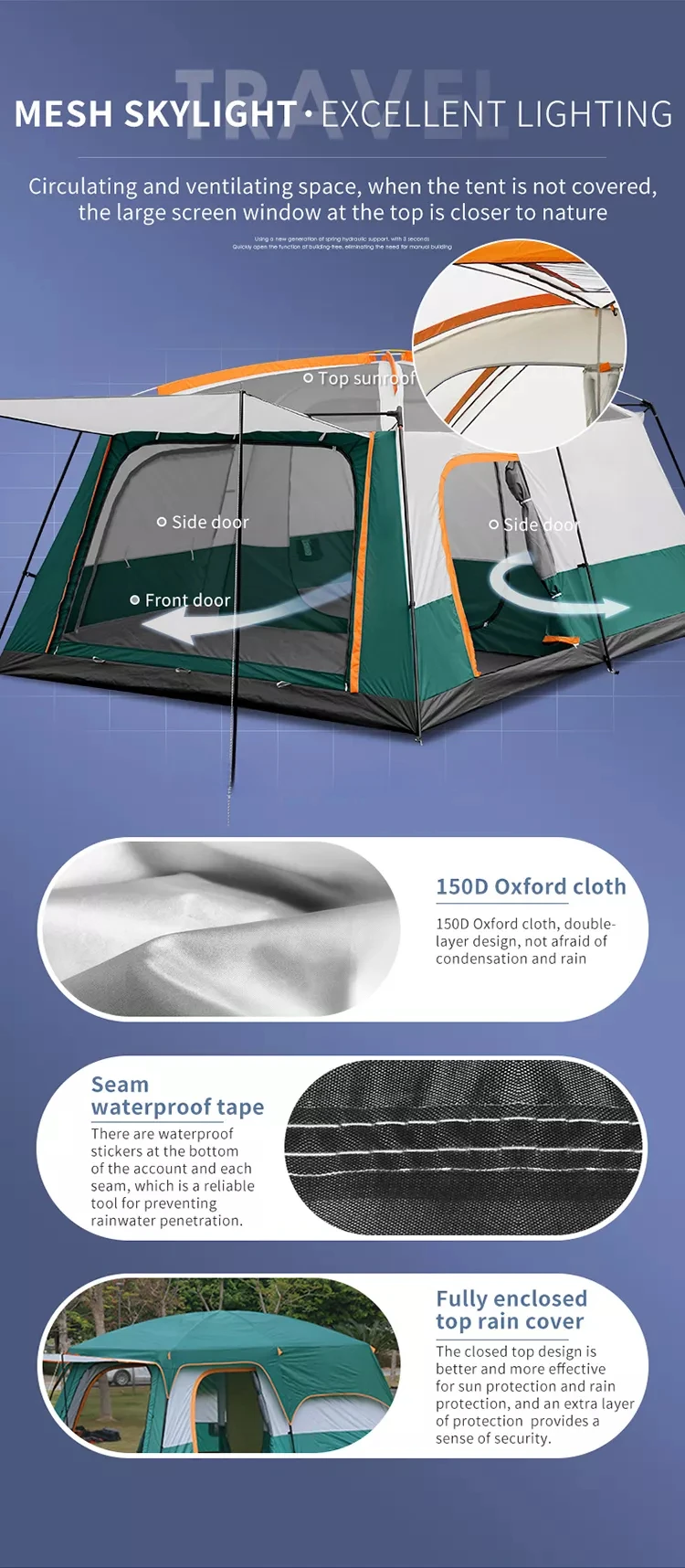 Outdoor Waterproof Custom Portable Large Space Luxury Double Layer 2 Rooms 1 Living Room Family Automatic Camping Tent for Sale