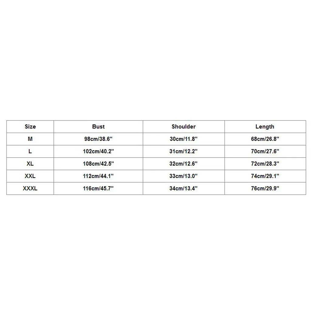 | Size:XXXL | Bust:116cm/45.7" | Shoulder:34cm/13.4" | Length:76cm/29.9" |