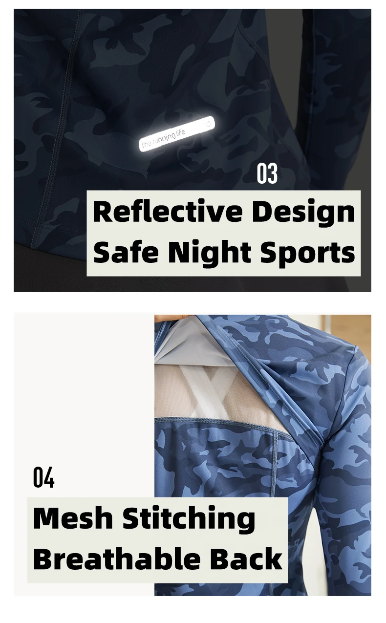 Women Camouflage Running Jacket Outdoor Sports Zipper Hoodies Golf Tennis Cycling Training Coat Tie Dye Gym Fitness Yoga Shirts