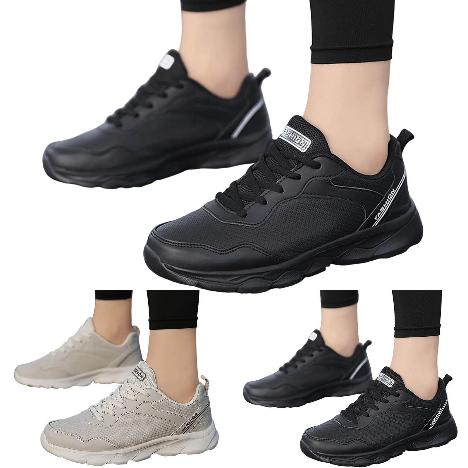 Women Sports Shoes Fashion New Pattern Simple Solid Color Thick Bottom Flat Bottom Lace Up Comfortable Lightweight Shoes